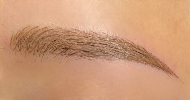 毛並みとパウダーを組み合わせた施術。立体感と色の均一さを両立したナチュラルで美しい眉に。